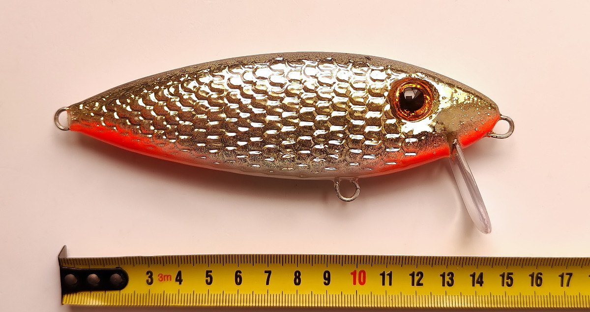 - Faza testowo-rozwojowa: Ten wobler jest obecnie w fazie testowo-rozwojowej. Pracuję nad dodatkowym gadżetem (kilka wersji), który będzie klekotał i grzechotał, aby jeszcze bardziej skupić uwagę ryb. (zobacz)