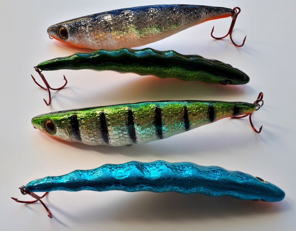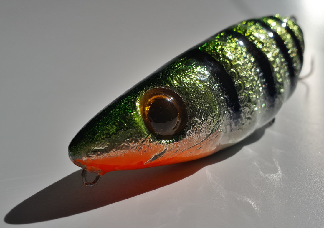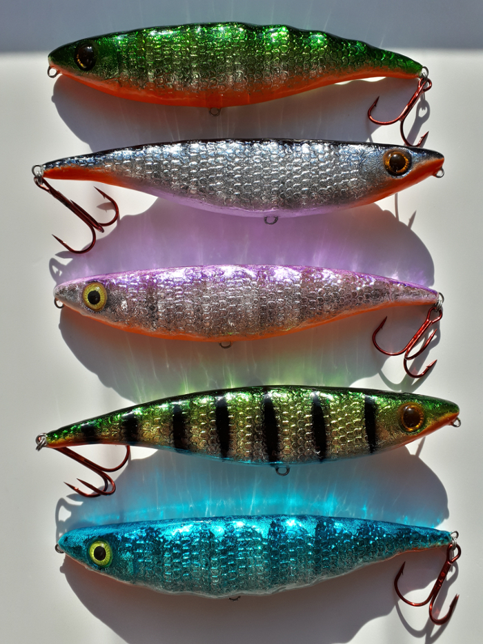 Jerk Gewicht/Refleks występuje w wersji tonącej (66 g), jak i pływającej (54 g). Tę wersję charakteryzuje wygięty korpus z dodatkowo pofalowanymi liniami bocznymi. Korpus ma długość 18 cm. Pofalowane boki oddają znakomite refleksy, co jest widoczne w dalszej części materiału zdjęciowego tego produktu.
