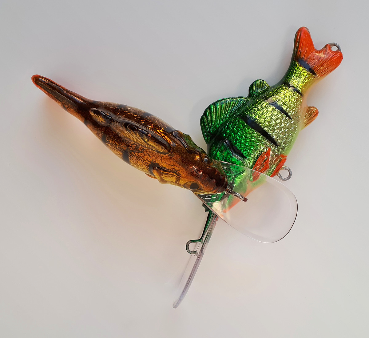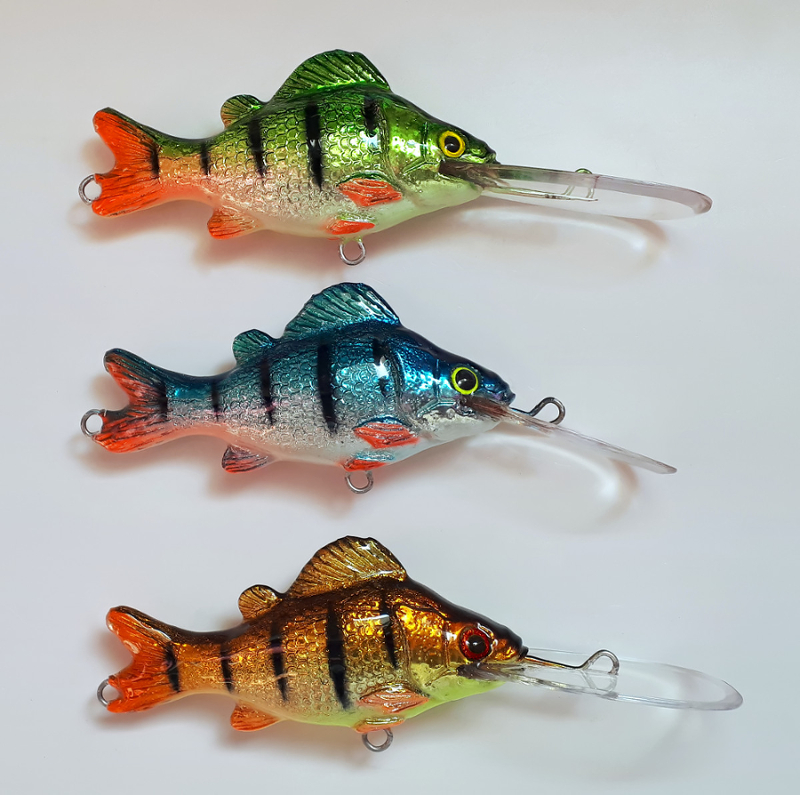 Pływający model, nieco wzorem przypominający okonia waży około 45g i mierzy 11,5 cm. W zależności od wersji model wykazuje mocną lub agresywną pracę. W trollingu okonie zdobywają kilka głębokości: 1,5-2m, 3 m, 5 m i 7 m.