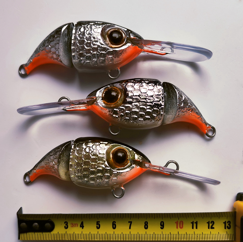 W przypadku tego modelu również wdrożyłem efekt dynamicznego klekotania oraz donośnego grzechotania. Podczas testu na filmie, można zaobserwować drobną ale wciąż mocną pracę (większa częstotliwość drgań) w trakcie niewielkiej prędkości prowadzenia takiej pływającej przynęty. Ten rodzaj akcji był mi bliższy w całosezonowej porze sjesty oraz aktywności jesiennej (zobacz) Zakres trollingu tego grzechotnika to 4 - 4,5 m.