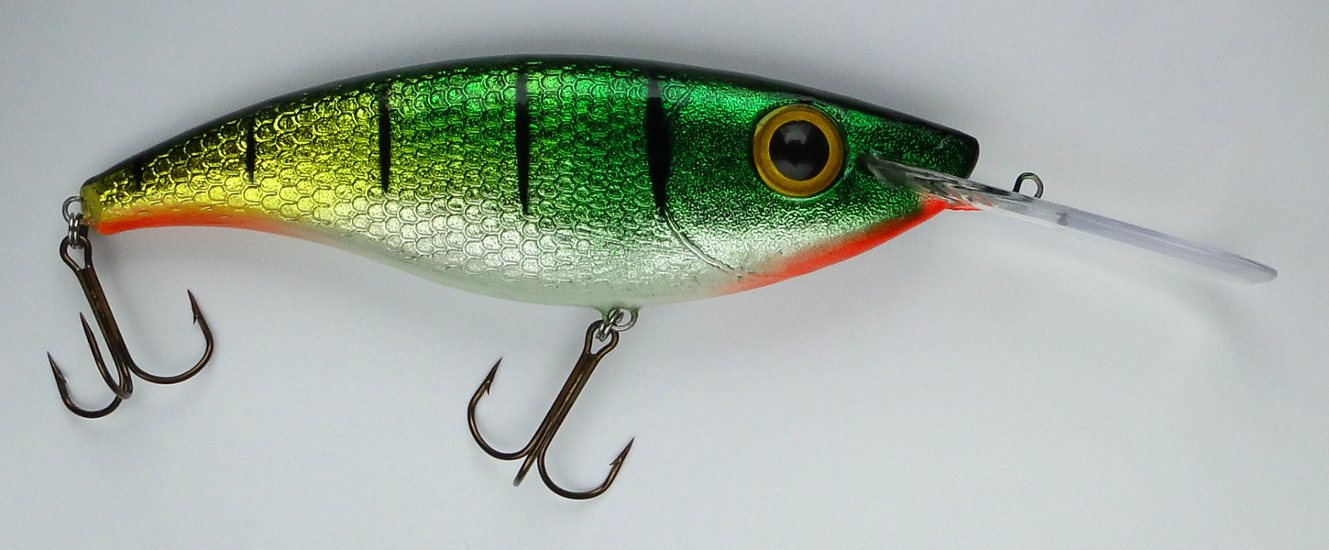 Zmodyfikowany model, w trakcie trollingu z elastyczną prędkością ( 2,5 – 5km/h) bez problemu sięga głębiej niż 25 metrów, zachowując wciąż mocną pracę (podczas testu wobler uzbrojony w kotwy 5/0)