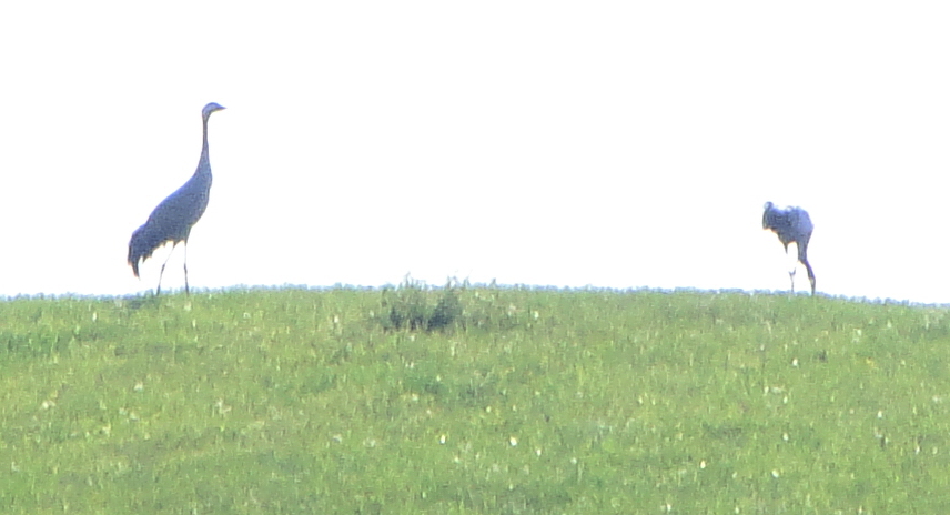 Opuszczając teren schroniska, naprzeciw zobaczyłem jakby zmrożone moim widokiem żurawie. Wtopiona w mgliste otoczenie para ptaków pielęgnowała swe piórka na okolicznym pastwisku. We śnie nie było mi do śmiechu, przecież w drodze na ryby mogłem być pożarty przez „okrutne, latające gady”. Chyba byłoby lepiej, gdybym przed snem nie oglądał fantastycznych filmów. Głęboko westchnąłem. Gdy żurawie uniosły się, usłyszałem głośny klangor, który w trakcie snu wziąłem za jazgot rozjuszonych pterodaktyli. Spłoszone ptaki zniknęły za lasem. A szkoda, to takie niecodzienne ptaki z zadziwiająco kosmatym upierzeniem. Gdyby ktoś o brzasku, we mgle, nie słyszał głośnego krzyku żurawi, to bardzo proszę. Ten donośny dźwięk jednym może kojarzyć się z prehistorią, a innym po prostu, z głosem trąbki.