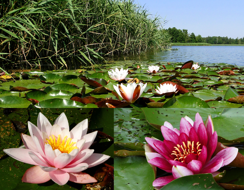 Gdy już tam dotarłem, tym razem obrałem punkt pomiędzy wyspą a początkiem grząskiego lądu. Na lewo ode mnie, w płytko zalanych czystą wodą zatokach, dostrzegłem cienie snujących się ryb. Wyglądały niczym miniaturowe łodzie podwodne, poruszające się w zwolnionym tempie. To chyba karpie. Czasem pokazywały swój ryj, jakby szeptały do siebie. Wyraźnie nie przeszkadzały im tańczące łabędzie i te, głęboko zaawansowane w związek partnerski. Łyski wygłupiały się, a kaczki woziły na grzbiecie swoje maleństwa. Cały teren otaczał rozległy pas trzcin, który bardzo utrudniał dostęp do brzegu. Natomiast pode mną było w sam raz, cztery metry głębokości. Mogłem tam spinningować do woli i w każdą stronę. Z prawej strony, w oblanej słońcem wodzie, zobaczyłem pływające o długim ogonku, skórzaste liście grążela żółtego. Po przeciwnej stronie bielące się w słońcu grzybienie białe. To kwiaty Lilii wodnych, wyrastające z płaskich kapeluchów. W sitowiu iskrzyły srebrzysto-żółtym blaskiem z jaskrawo czerwonymi płetwami niewielkie ryby. Poruszone moim widokiem wzdręgi kryły się w oczeretach. W tym samym momencie uderzył mnie intensywny zapach dzikiego jaśminowca, właśnie którego woń czułem już z dużej odległości.